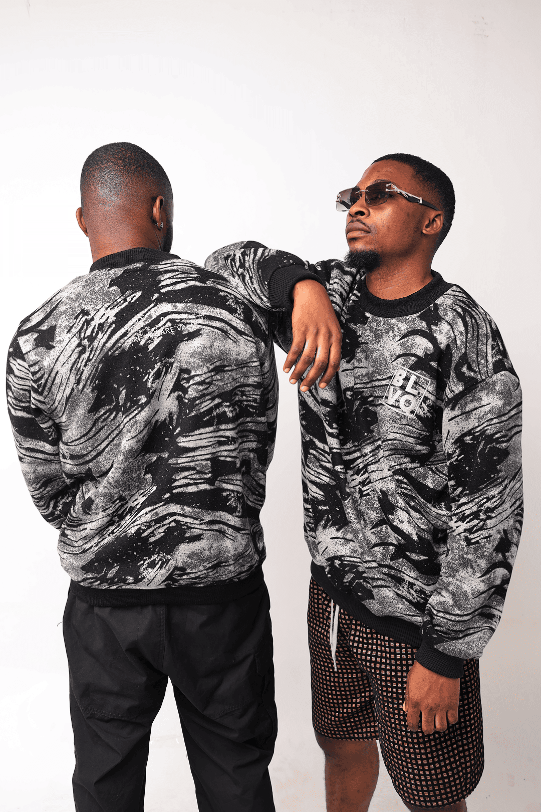 Step into statement comfort with the BLVQ Abstract Terrain Sweatshirt. Designed with a bold monochrome pattern that blends raw texture and fluid strokes, this piece captures the essence of streetwear artistry. The heavyweight cotton blend provides warmth without compromising breathability, while the ribbed cuffs, hem, and neckline ensure a secure yet relaxed fit.